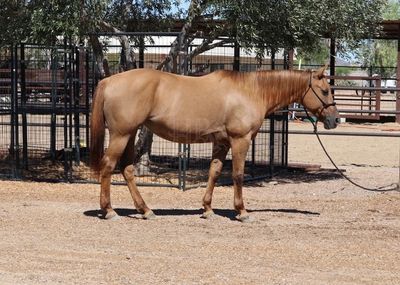 Franny is a 13 year old red dun mare standing 14.3 hands with more of an athletic build. She has straight legs, no blemishes or scarring and a sweet demeanor. From the moment you halter her, groom, saddle, and step on, she’s the same horse every time. She hasn’t been finished in any one discipline but has been the go-to horse for a little bit of everything. Franny strikes a nice balance - she’s not a deadhead, but she’s not overly quick-footed either. You ask, and she responds. I find her enjoyable to ride as she’s honest with no funny business. She walk, trot, and canters with ease. Has a great stop, neck reins, moves off leg, side passes, and has a decent turnaround. Her only “mare-ish” quirk is pinning her ears at times while being ridden it’s completely harmless but can be off putting to some. Franny has played around on barrels and poles not finished, but handy enough to do them. She does well out on the trails. The worst she’s done is try to turn back when leaving the house; correct her once, and she moves on without issue. She’s definitely not the spooky type but if she does react, it’s subtle. Franny would make a great step-up horse for a youth rider or someone looking to dabble in a bit of everything. As mentioned, she’s safe and sensible but responsive, so a confident, light-handed rider would be the best fit. She ties quietly, bathes, loads, and is a gem for the farrier. She’s always been well taken care of and has not needed any maintenance to date. Franny is current on feet, teeth, shots, and deworming.