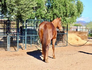 La Collotita aka LaLa is a 9-year-old AQHA mare standing 14.2 hands. Her pedigree includes Chicks Beduino, Mr Eye Opener, and First Down Dash. She may be on the smaller side, but she has grit, heart, and a real desire to please. When she is turned out her, her athleticism is amazing. I’ve been working with LaLa for the past few weeks, and she continues to improve every ride. She’s one that slipped through the cracks and simply ended up with people who didn’t match her needs. When I first started her, she was more standoffish — never reactive or unsafe, just seemed lost if that makes sense. She has really started to come around, looks for people and follows you around. In the arena, she is willing and has plenty of try, which is one of my favorite things about her. LaLa walks, trots, canters, is riding around soft , backs up, moving off leg pressure, and flexions. Very enjoyable to rider and work with. I took her back to the basics to begin rebuilding a solid foundation, and every session she shows progress. She is a mare who responds best to a soft but confident rider as she doesn’t do well with forceful handling. While under saddle she has not offered any bad behavior such as bucking, rearing or bolting. She did have a problem with standing still while mounting and instantly wanting to walk off but we have constantly been correcting this and she is extremely better. LaLa stands quietly while tied, bathed , grooming and saddling. Lala will do best with a confident rider that will continue on with her. I firmly believe LaLa has the ability to make someone a very nice horse, and I could see her thriving in the barrel pen as she has the talent and the grit. All the hard work is done and with the right person, she will work hard for you and continue to blossom. LaLa has no vices such as cribbing, weaving, pacing, or biting. She is current on hoof care, teeth, shots, and deworming.