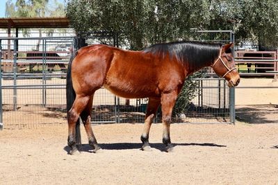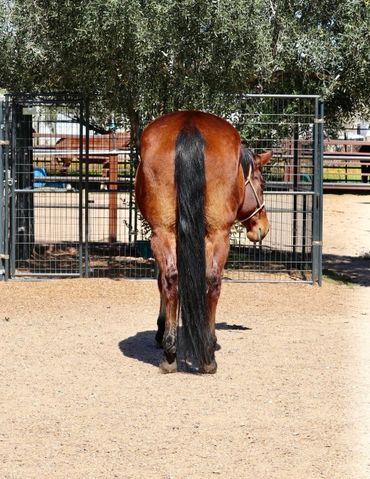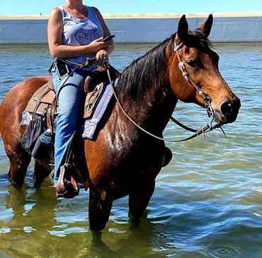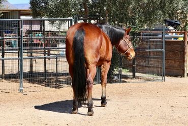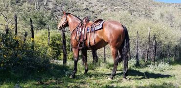 Lena is broke the way you hope they all would be! Extremely sweet with a disposition that’s hard to find. She was shown extensively in green reining and has easy turnarounds, spins, sliding stops, side passes, lead changes, and smooth departures into the lope. She is forward-moving yet very controllable, stops easily, and is exceptionally smooth to ride. She has also been used for beginner IEA riders in both in hand and under saddle classes, earning many ribbons. Lena trail rides extremely well, sure footed, willing to go through obstacles, enjoys water, and is not a spooky type. She has logged thousands of trail miles in Arizona and Montana, rides out alone quietly, does not get barn sour, and will walk home on a loose rein. Lena excels at ranch riding maneuvers and trail obstacles and has been ridden through towns and parades with an experienced rider. She hauls easily, loads well, stands for tacking, bathing, clipping, and everyday handling. She can be ridden English, Western, or bareback and handles each comfortably. She will pony other horses and even minis without issue. She is the kind of mare that can sit for periods and still be reliable when you saddle up, though she truly prefers regular activity and attention. While she may enjoy a good gallop now and then, she has not been used for speed events and is better suited for pleasure riding, trails, ranch riding, or low-key fun shows rather than competitive speed work. However, could easily go to a gymkhana and 4-H for someone looking for fun not being competitive. In the herd, Lena is an alpha mare but never aggressive with people. She keeps to herself, doesn’t start trouble, but also won’t be pushed around. I have seen her stalled by random horses while here and has not caused one problem. She has excellent ground manners and is genuinely kind with humans. She even reaches for the bridle herself when it’s time to go to work. Her owner is only selling because life circumstances have changed, and Lena deserves more activity than she is currently getting. We will be selective in finding her the right home, as she is a very special mare who thrives when she has a purpose and people to connect with. Lena is current on feet, teeth, vaccinations, and deworming.
