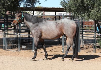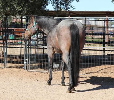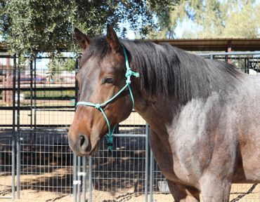 McCoy is a stunning 6-year-old bay roan gelding standing 15.2 hands. His owners purchased him a little over a year ago from a ranch in Canada while looking for a dressage prospect for their teenage daughter. They wanted the beautiful movement of a dressage horse, but also something with more exposure than just arena life. Prior to coming to them, McCoy had been ridden in both indoor and outdoor arenas, lightly tracked cattle, and trail ridden.