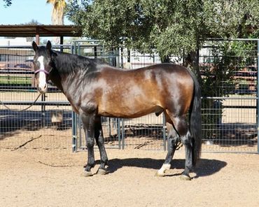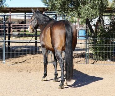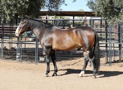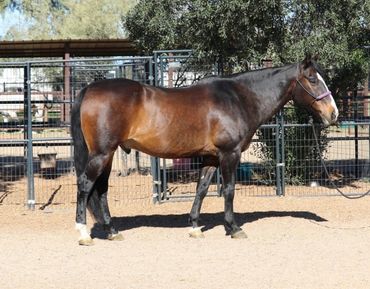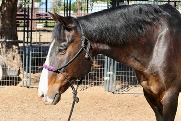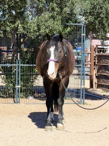 Meet Rio! He is a handsome Warmblood/Quarter Horse cross, a 17-year-old gelding standing 15 hands. Rio is a true been there, done-that type with a genuine demeanor who really enjoys his people. He has been owned by the same family for the past five years and was used for lower-level dressage and lessons for their two children. Prior to that, Rio spent six years as a lesson horse in the same barn. He is comfortable being ridden English or Western. Under English tack, Rio is a nice mover, understands his cues well, and has been a steady partner for his family. He has also done some jumping in the past, primarily smaller fences. Ridden Western, he’s just as enjoyable rides on a loose rein, has smooth transitions, and walks, trots, and canters nicely. He has a good stop, pivots, and side-passes. Rio isn’t limited to arena work and enjoys the trails. He’s not a spooky type and seems happy to get out and about. He is suitable for most levels of riders; however, for a very novice rider, he’s not a “push-button” type and may occasionally test, “Are you sure you want me to do that?” He does not offer any bucking, rearing, or bolting. At this time, Rio does not require any special maintenance or supplements. He’s an easy keeper and has been well cared for. His current family is stepping away from horses and wants nothing more than an excellent home for him. He would make a great step-up horse for a youth rider, and an entire family could enjoy him as well. Rio is current on hoof care, teeth, shots, and deworming.