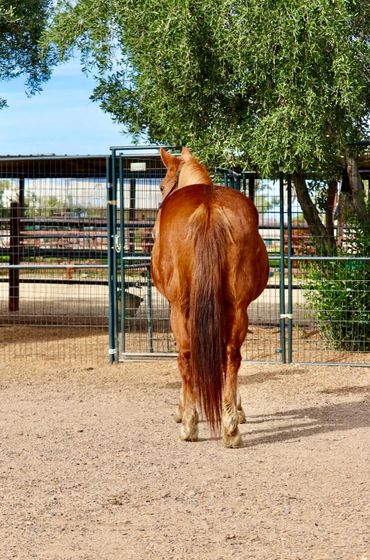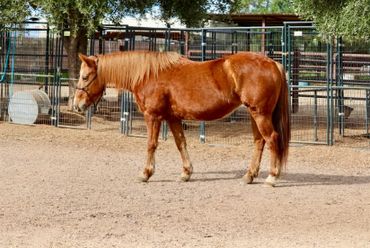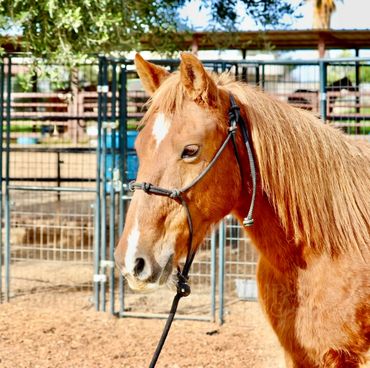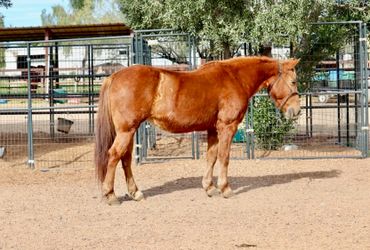 Meet Skittles! She is a 16-year-old sorrel mare standing 13.1 hands with a stocky, solid build. You know those ponies you see in videos where kids are doing the most random things, having a blast without a care in the world? That’s exactly what comes to mind when I think of Skittles. She’s not fancy broke , she knows the basics and is happy staying there. In the arena she will walk and trot, follows the bit fairly well, but she was never truly taught formal arena work. She has a good little stop, direct reins, will ride in a bit, and also does fine in a hackamore or halter. She will canter out on the trail, but in the arena she prefers a walk/ trot and will happily stay there. At this point, Skittles is what she is — a grab-and-go pony. It may not be pretty, but she has not offered any concerning behavior such as bucking, rearing, or bolting. I’ve personally watched my kids and students do the most random things with Skittles, and it makes me laugh every time. She’s great to lead-line littles and has no desire to go anywhere fast when doing so. She goes out on the trails, isn’t easily bothered or spooky, and can be ponied off a bigger horse as long as the other horse isn’t a bully. She enjoys being bathed and groomed. She can be a little stubborn about picking up her feet, but we continue to work on it. Skittles is a pony she’s not perfect every single time but any stubborn moments have never been nasty. She’s sturdy enough for an adult to ride, and if someone wanted to tune her up and add some extra buttons, the option is there. Skittles is being sold exactly as she is: a great lead-line, play-around, companion pony. She’s an easy keeper and is current on feet, teeth, shots, and deworming.